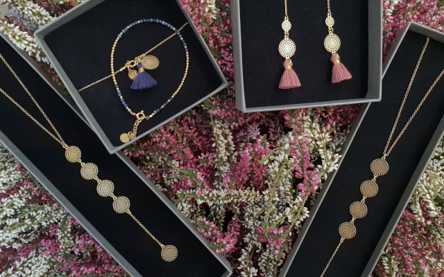 Biżuteria jest zaprojektowana i wykonana przez polskich artystów ze srebra pozłacanego 24 karatowym złotem. Wszystkie modele biżuterii pochodzą z najnowszej kolekcji utrzymanej z charakterystycznej dla marki stylistyce boho.