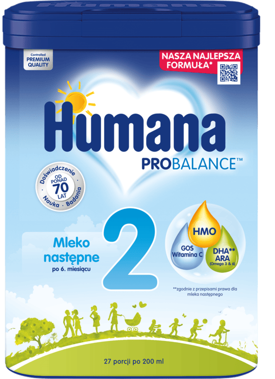 Jako eksperci w dziedzinie żywienia dzieci od ponad 70 lat tworzymy formuły mleczne, które wspierają rozwój dziecka, dbając jednocześnie o higienę, wygodę i bezpieczeństwo każdego dnia. Humana 2 PROBALANCE z HMO jest najlepszą formułą w historii mlek Humana, dostarczającą dziecku wszystko co potrzebne do wspierania naturalnej ścieżki jego rozwoju.
