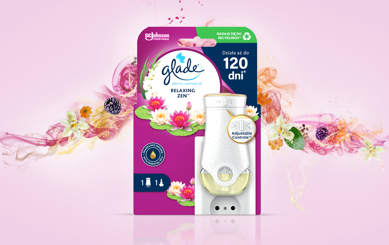 Glade® Electric Scented Oil łączy w sobie eleganckie wzornictwo z wyjątkową technologią zapachową. Elektryczny odświeżacz powietrza doskonale wypełni zapachem każde pomieszczenie Twojego mieszkania od salonu po łazienkę. Dzięki ulepszonej pięciopoziomowej regulacji zapachu możesz dostosować intensywność wydzielania aromatu tak jak lubisz. Ciesz się idealnie dozowanym ulubionym aromatem w każdym pomieszczeniu!