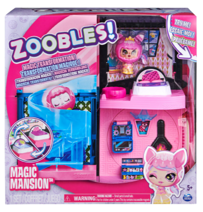 ZOOBLES MAGICZNA WILLA - Magiczna Willa,ten niesamowity zestaw jest pełen magicznych transformacji i ożywia szalony świat Zoobles. Zawiera trzy różne pokoje, zjeżdżalnię, miejsca wystawowe i jedyną w swoim rodzaju Laleczkę Z-Girl. Łącz ze sobą pokoje Magicznej Willi w taki sposób, jaki chcesz. Sprawdź wannę z hydromasażem na piętrze, a następnie spuść swoją Z-Girl z poduszki na dół po zjeżdżalni i obserwuj, jak ożywa. Postaw swoją Laleczkę Z-Girl na parkiecie i zakręć kołem, aby zatańczyła!