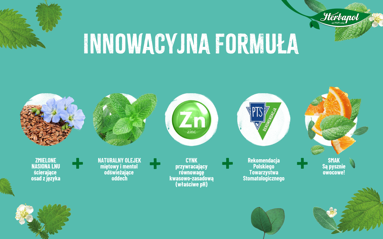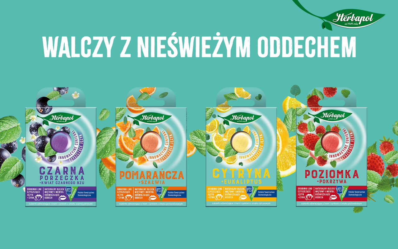 Cukierki czyszczące język marki Herbapol są pierwszym i jedynym takim produktem na polskim rynku. Swą wyjątkowość zawdzięczają unikalnej kompozycji składników, w 4 opcjach smakowych.