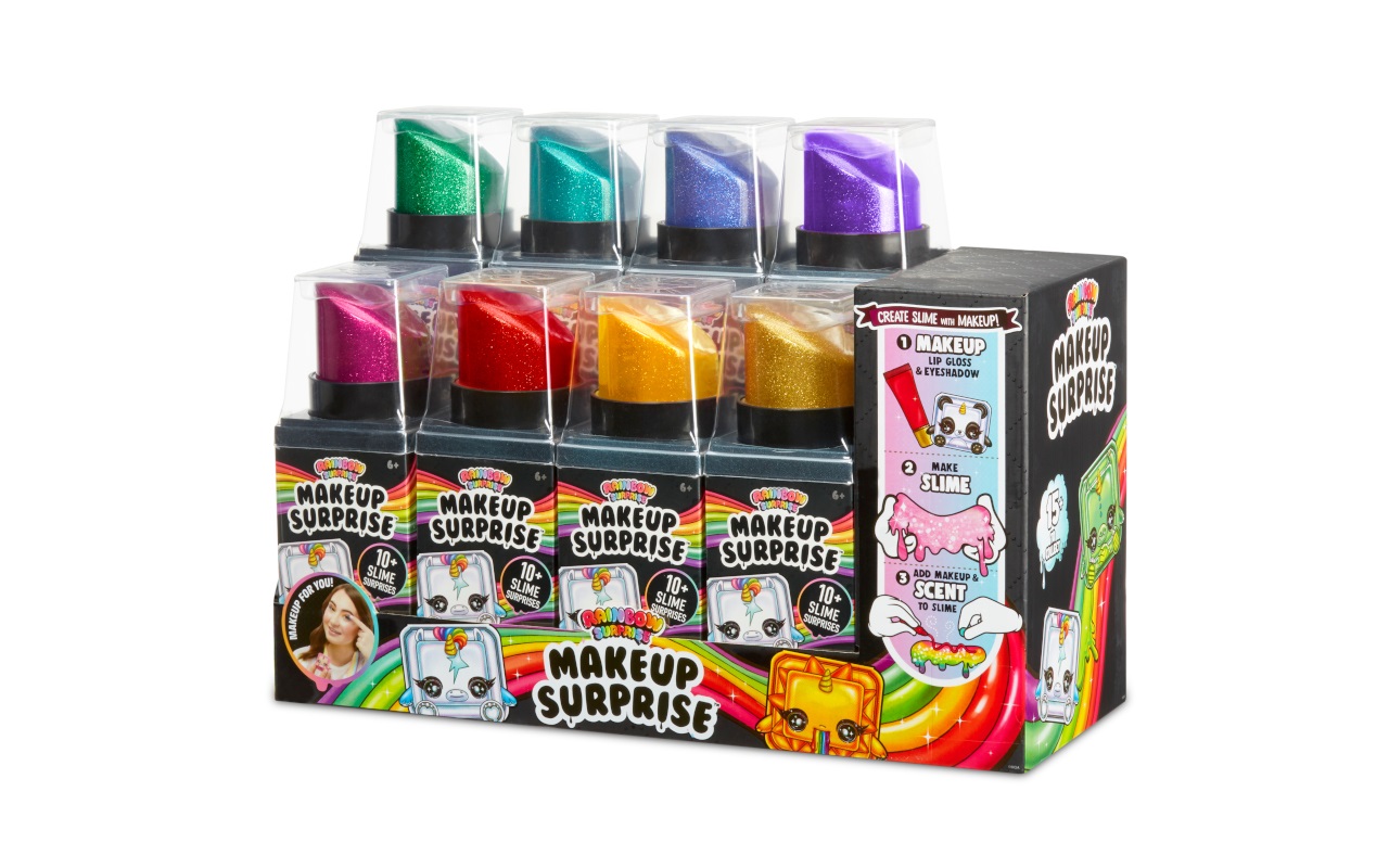 Make Up Surprise - pudełeczko w kształcie szminki z makijażową niespodzianką w środku. W środku znajdziesz kolorowy cień do powiek w opakowaniu w kształcie zwierzątka oraz kolorowy błyszczyk. Pod kolorową końcówką szminki, znajdują się dodatkowe niespodzianki, które czekają na otwarcie! Za ich pomocą będziesz mogła stworzyć slime i ozdobić go błyszczącym cieniem lub błyszczykiem.