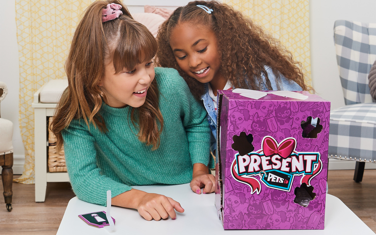 W każdym ozdobnym pudełku kryje się jeden z dwóch dostępnych piesków. Który z nich kryje się w Twoim prezencie? Dowiesz się tego w chwili w której zwierzaczek samodzielnie się z niego wydostanie! Uroczy interaktywny pupil jest bardzo podekscytowany przed Waszym pierwszym spotkaniem. Dzięki ponad 100 odgłosom i akcjom Present Pets wzbudza prawdziwą radość posiadania własnego czworonoga! Który z piesków ukryje się w Twoim prezencie?