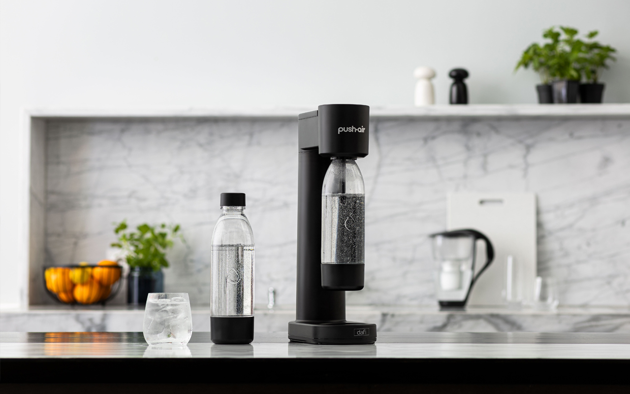 Ciesz się w każdym momencie idealnie gazowaną wodą - bez prądu, bez zbędnych wydatków i wszechogarniających butelek PET. Saturator PUSHAIR jest nie tylko łatwy w obsłudze, ale również wpisuje się w estetykę każdej nowoczesnej kuchni – sprzęt nablatowy od teraz może mieć świetny, minimalistyczny design.