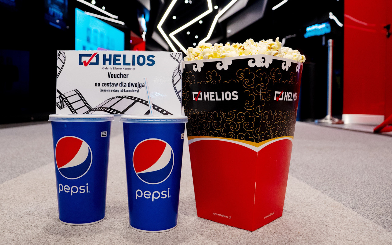 Dwa podwójne otwarte zaproszenia do Kina Helios w Katowicach - w tym do sali Dream + zestaw dla dwojga: popcorn (solony lub karmelowy) i napój oraz podwójne otwarte zaproszenie do Kina Helios w Katowicach dla Twoich obserwatorów!
