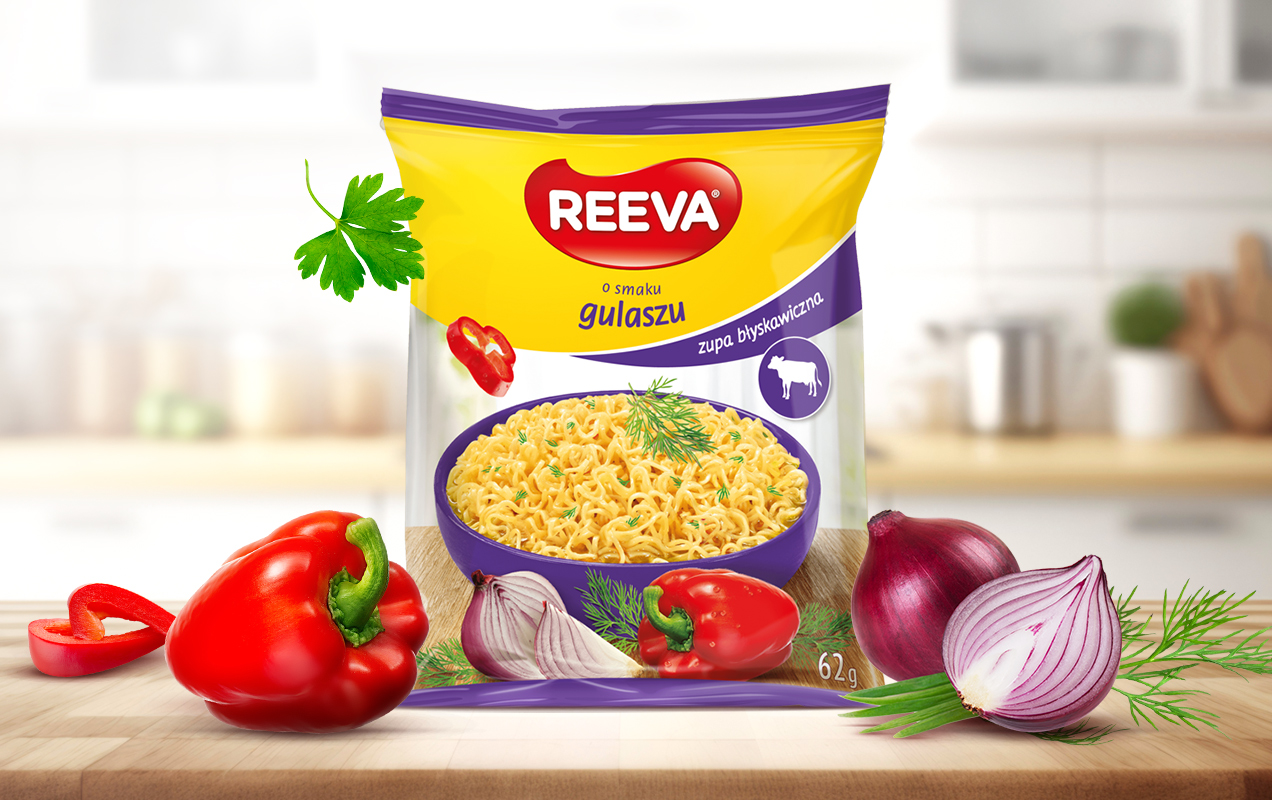 Zupy REEVA to produkty dla całej rodziny. Każda z zup zawiera suszone warzywa i delikatny makaron z mąki wysokiej jakości. Reeva to gwarancja dobrego smaku, kiedy nie chesz tracić czasu na gotowanie.