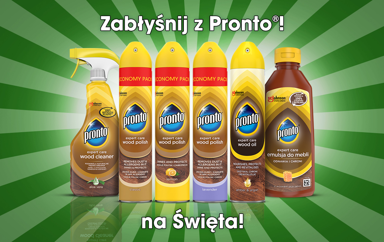 Pronto® to znana i ceniona marka, która specjalizuje się w produkcji wysokiej jakości artykułów do czyszczenia różnych powierzchni w domu. Produkty Pronto® nie tylko skutecznie usuwają zabrudzenia i zapewniają ochronę, ale także odświeżają i nadają blasku Twoim meblom. Wypróbuj produkty Pronto® i zobacz, jak łatwo możesz uczynić swój dom jeszcze piękniejszym, gotowym na nadchodzące święta!