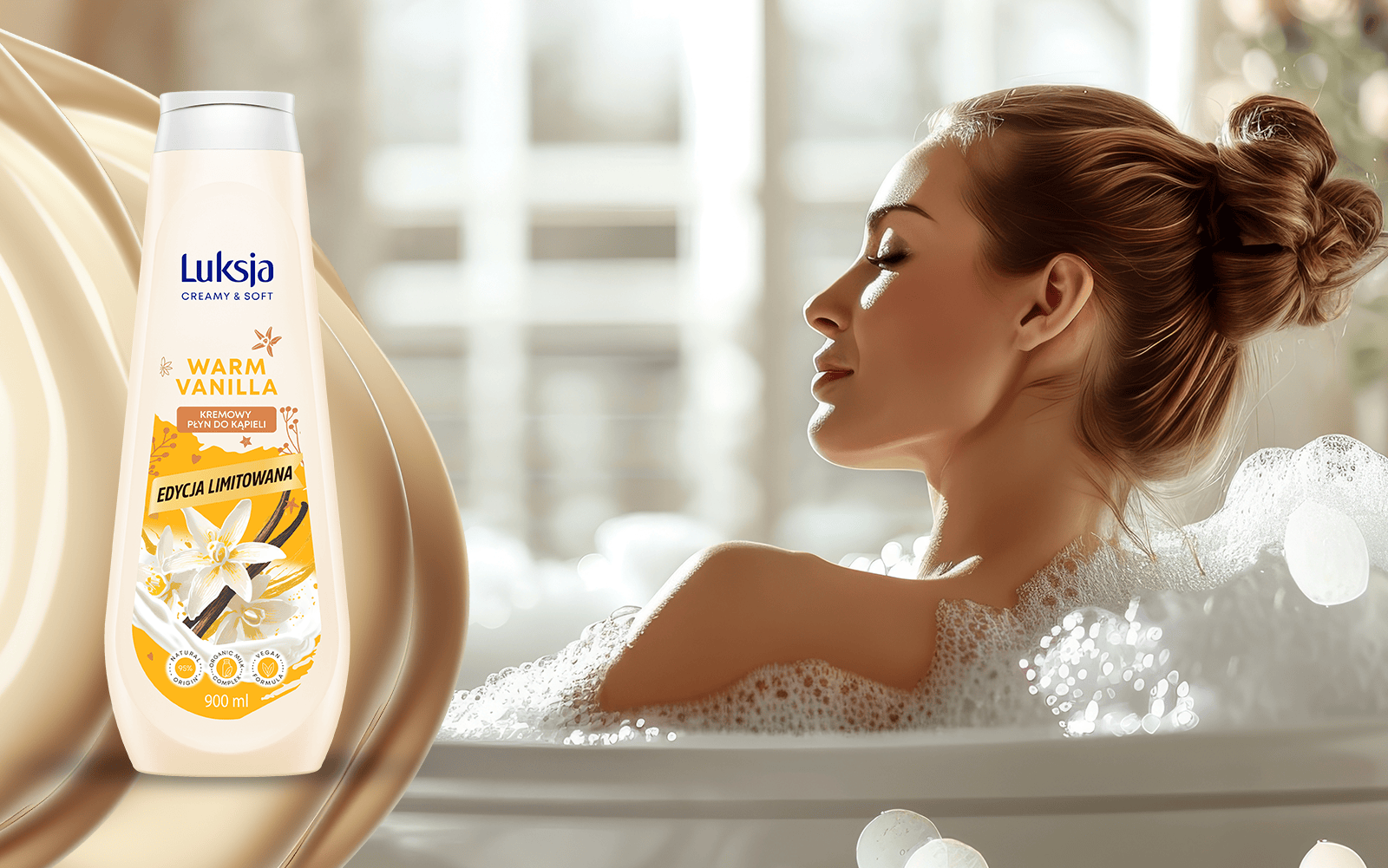 Luksja Creamy & Soft Płyn do kąpieli Warm Vanilla, 900 ml